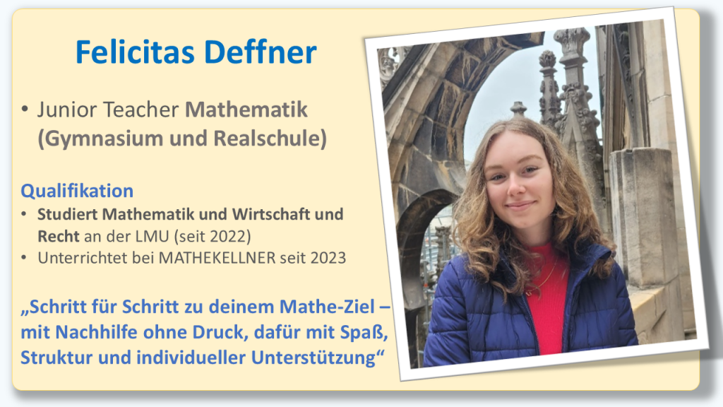 - Ein erfahrener Mathematiklehrer kennt den Stoff aus dem Effeff und kann somit spontan auf jede Frage eingehen, ohne dabei auszuschweifen oder deine Zeit mit unnützen Informationen zu verschwenden